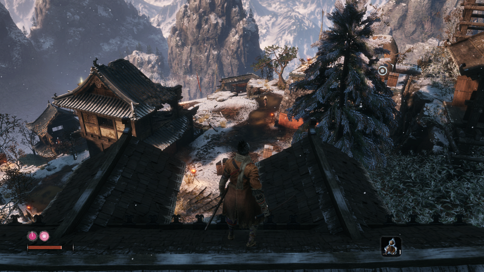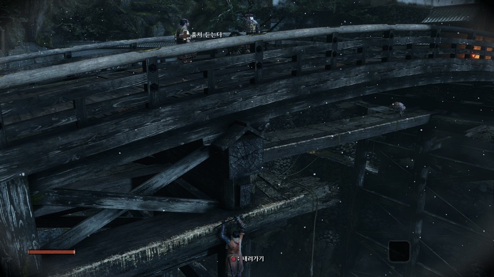 이제 지붕으로 올라가신 뒤 굉장히 까다로운 구간이 나옵니다. 여기서 제가 세키로 공략답게 한마리씩 잡으라는 말을 하고 싶었지만...제가 추천드리는 방법은 다음 귀불까지 RUN하면서 달리는겁니다.ㅋㅋㅋㅋ 한명씩 상대하다보면 진짜 힘듭니다..