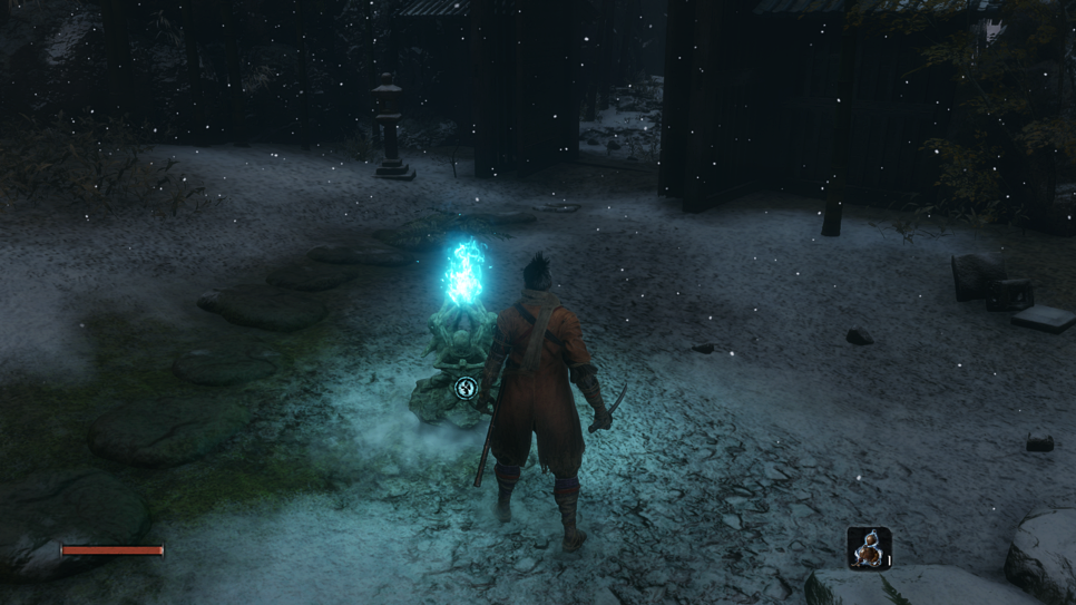 이제 다시 깨어나면 황폐한 절에서 시작합니다. 닌자 의수를 회득해주시고 앞에 불상 조각가랑 대화를 진행해주시면 됩니다.